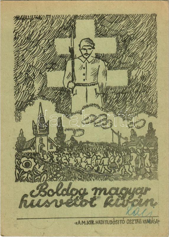 1942 Boldog Magyar Húsvétot kíván. Második világháborús Tábori Postai Levelezőlap, húsvéti üdvözlet. A M. Kir. Haditudósító Osztag kiadása / WWII Hungarian military field postcard with Easter greeting + "Tábori postahivatal 113"