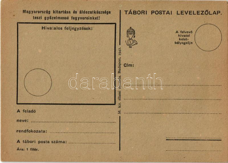 Második világháborús Tábori Postai Levelezőlap, húsvéti üdvözlet / WWI... https://www.darabanth.com/de/45-Gross-Auktion/45.1/Ansichtskarten/Militaria~18838/Masodik-vilaghaborus-Tabori-Postai-Levelezolap-husveti-udvozlet-WWII-Hungarian-military~II3413191