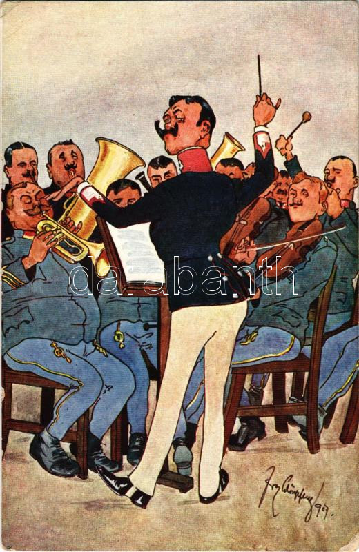 Beschreibung: 'Militärkapelle' / K.u.K. military band, humour. B.K.W.I. 953-4. s: Schönpflug + "Báró Barkóczy Sándor" (EB)