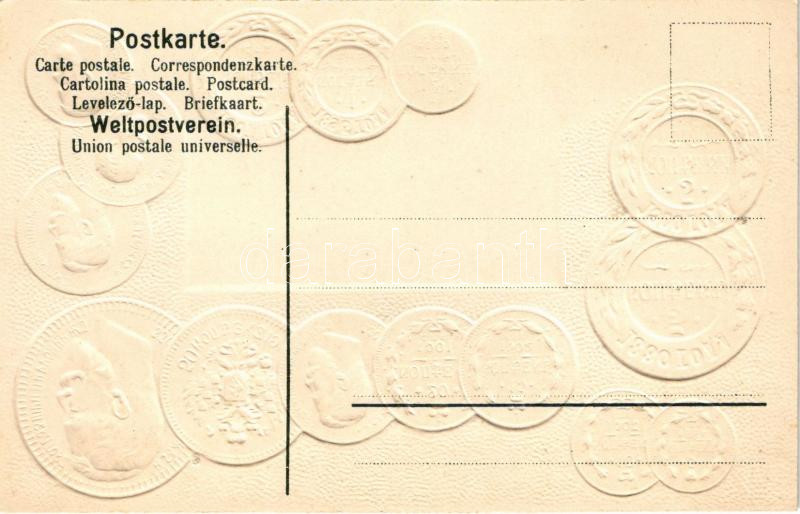La Russie, pavillon national / Oroszország - érmék és zászló. Domborny... https://www.darabanth.com/de/45-Gross-Auktion/45.1/Ansichtskarten/Numismatik~18845/La-Russie-pavillon-national-Oroszorszag-ermek-es-zaszlo-Dombornyomott-Russian-coins-an~II3450243