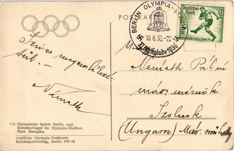 1936 Berlin, Olympischen Spiele, Kunstspringer im Olympia Stadion / 1936. évi nyári olimpiai játékok, műugrás / vault at the the 1936 Olympic Games + "BERLIN OLYMPIA-STADION XI. OLYMPIADE 1936" So. Stpl (EK)