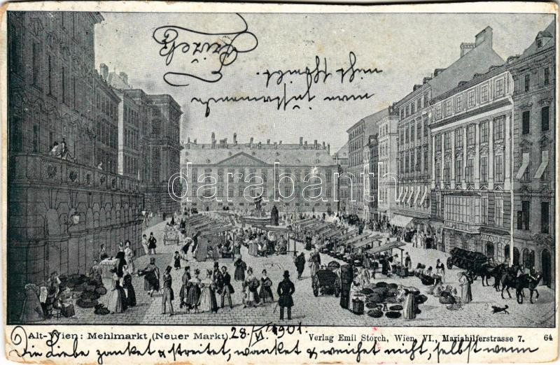 1901 Wien, Vienna, Bécs; Alt-Wien, Mehlmarkt (Neuer Markt). Verlag Emi... https://www.darabanth.com/de/45-Gross-Auktion/45.1/Ansichtskarten/Osterreich~18773/1901-Wien-Vienna-Becs-Alt-Wien-Mehlmarkt-Neuer-Markt-Verlag-Emil-Storch-market-EM~II3448667