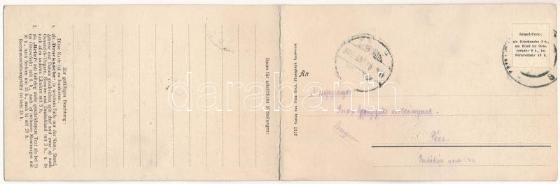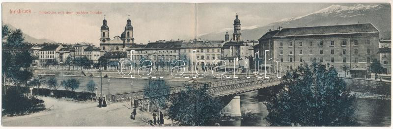 Beschreibung: Innsbruck, Innbrücke mit dem rechten Innufer. Verlag von Fritz Gratl / church, bridge, shops. 2-tiled folding panoramacard (EK)