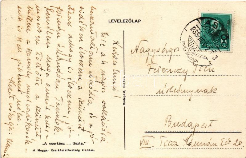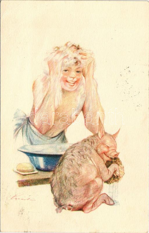 1935 A cserkész... tiszta. Cserkész művészlap malaccal A Magyar Cserkészszövetség kiadása, Globus Budapest / Hungarian boy scout art postcard with pig s: Márton L. (EB)