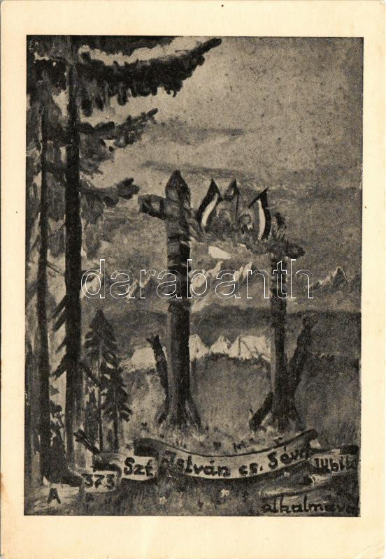 A 373. Szent István cserkészcsapat 5 éves jubileuma alkalmával. Magyar cserkész művészlap egerekkel. Martineum Rt. Szombathely / Hungarian boy scout art postcard with mice s: Benkő L. (gyűrődés / crease)