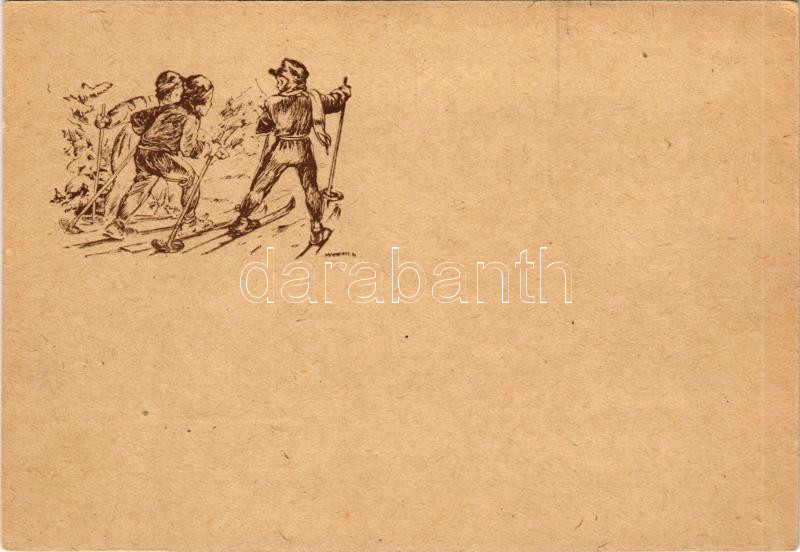 Cserkész művészlap, síelés / Hungarian boy scout art postcard, skiing,... https://www.darabanth.com/de/45-Gross-Auktion/45.1/Ansichtskarten/Pfadfinder~18827/Cserkesz-muveszlap-sieles-Hungarian-boy-scout-art-postcard-skiing-winter-sport-s-Marton-~II3428290