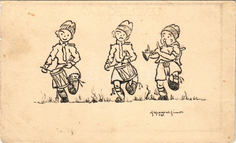 Beschreibung: Dobosok, cserkész művészlap / Hungarian scout art postcard s: Jajesnica János (b)