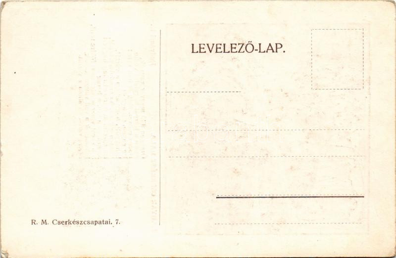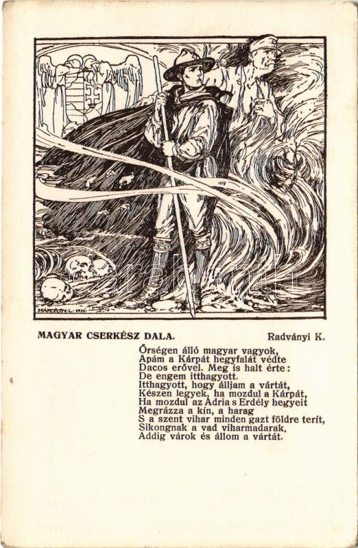 Magyar cserkész dala. Radványi K., R.M. (Regnum Marianum) Cserkészcsapatai 7. / Hungarian boy scout art postcard with song s: Márton L. (kis szakadás / small tear)