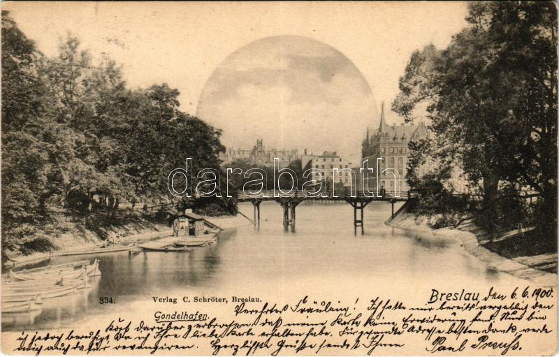 1900 Wroclaw, Breslau; Gondelhafen / gondola harbor, bridge (tiny tear... https://www.darabanth.com/de/45-Gross-Auktion/45.1/Ansichtskarten/Polen~18796/1900-Wroclaw-Breslau-Gondelhafen-gondola-harbor-bridge-tiny-tear~II3414555