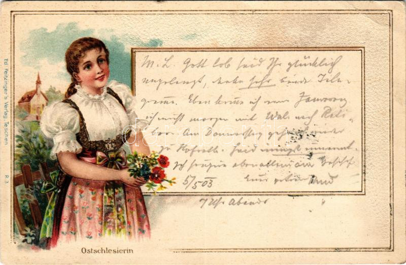 1903 Ostschlesierin. Ed. Feitzinger's Verlag (Cieszyn, Teschen) R... https://www.darabanth.com/de/45-Gross-Auktion/45.1/Ansichtskarten/Polen~18796/1903-Ostschlesierin-Ed-Feitzingers-Verlag-Cieszyn-Teschen-R3-Folklore-from-East-Silesia-Em~II3414750