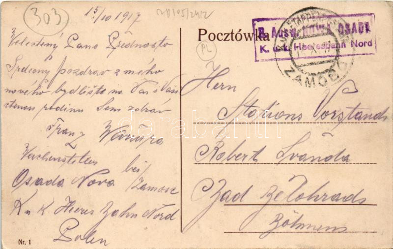 1917 Zamosc, Sródmiescie / downtown, town hall + "B. Ausw. NOWA O... https://www.darabanth.com/de/45-Gross-Auktion/45.1/Ansichtskarten/Polen~18796/1917-Zamosc-Srodmiescie-downtown-town-hall-plus-B-Ausw-NOWA-OSADA-KuK-Heeresbahn-Nord-EK~II3453432