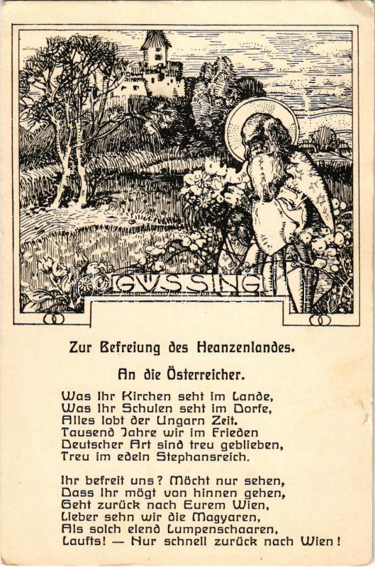 Zur Befreiung des Heanzenlandes. An die Österreicher / az Őrvidék fels... https://www.darabanth.com/de/45-Gross-Auktion/45.1/Ansichtskarten/Propaganda-Politik~18847/Zur-Befreiung-des-Heanzenlandes-An-die-Osterreicher-az-Orvidek-felszabaditasa-propaganda-ve~II3454354