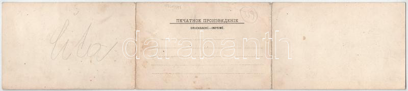 Beschreibung: Chita, 3-tiled folding panoramacard with library, synagogue (creases)