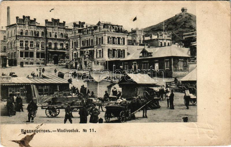 Vladivostok, Vlagyivosztok; market square, horse-drawn carriages, shop... https://www.darabanth.com/de/45-Gross-Auktion/45.1/Ansichtskarten/RuC39Fland~18810/Vladivostok-Vlagyivosztok-market-square-horse-drawn-carriages-shop-Phototypie-Scherer-Nabholz-~II3454898