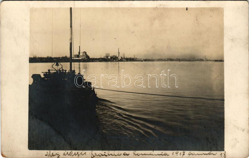 1917 Braila, megérkezés Brailába / WWI K.u.K. military, entering the p... https://www.darabanth.com/de/45-Gross-Auktion/45.1/Ansichtskarten/Rumanien~18813/1917-Braila-megerkezes-Brailaba-WWI-KuK-military-entering-the-port-of-Braila-photo-fa~II3450533