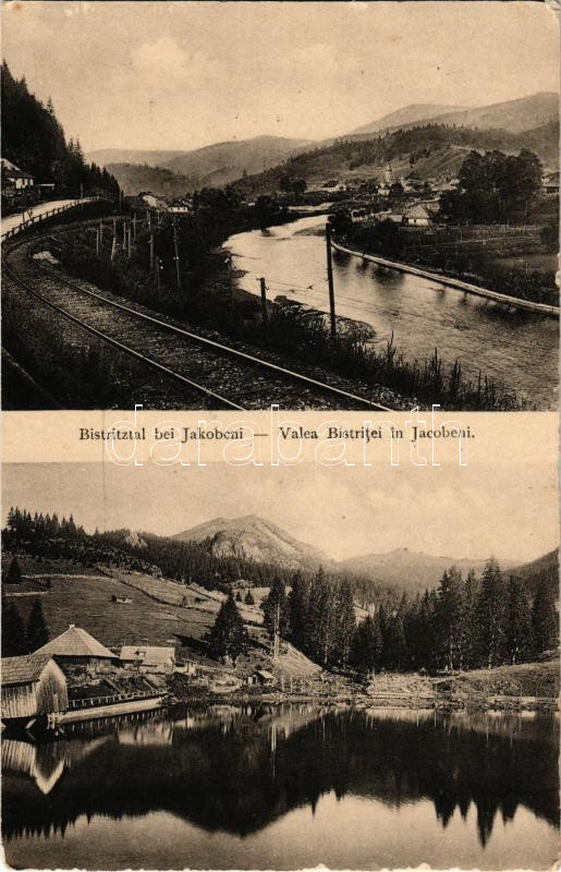 Iacobeni, Jakobeni, Iacobeni, Jakobeny (Bukovina, Bucovina, Bukowina); Bistritztal bei Jakobeni / Valea Bistritei in Jacobeni / valley, railway line (9,6 cm x 15,4 cm) (EM)