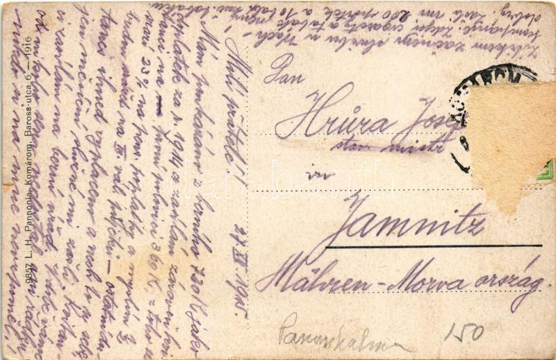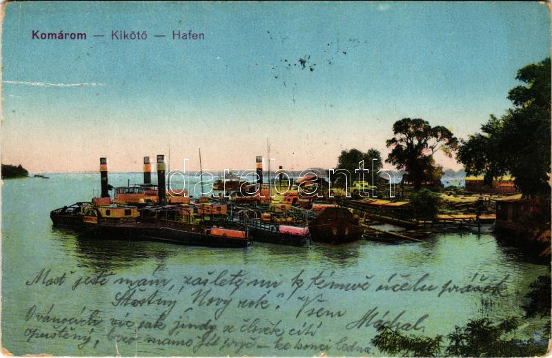 1915 Komárom, Komárno; Kikötő, SMD Pannonhalma oldalkerekes vontató gőzhajó / Hafen / PANNONHALMA sidewheeler steam tug. She was requisitioned by the k.u.k. Zentraltransportleitung (ZTL) for service on the Danube during the First World War (Rb)