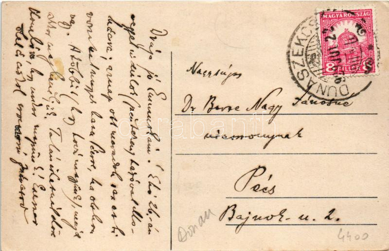 Dunaszekcső, Duna részlet, hajóállomás, DONAU lapátkerekes személygőzös / SMD Donau, a sidewheeler passenger steamer. Donau was requisitioned for service by the K.u.K. Z.T.L. (Zentraltransportleitung) during the First World War. On November 1, 1918, she was sunk off Zemun by Serbian artillery fire (EK)