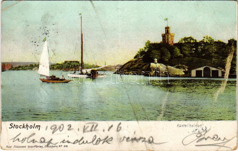 1902 Stockholm, Kastellholmen. Axel Eliassons Konstförlag No. 316. / i... https://www.darabanth.com/de/45-Gross-Auktion/45.1/Ansichtskarten/Schweden~18815/1902-Stockholm-Kastellholmen-Axel-Eliassons-Konstforlag-No-316-island-sailing-boat-EB~II3417021