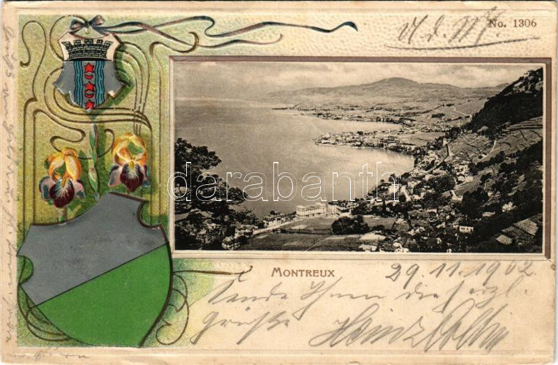 1902 Montreux, general view, coat of arms. Jullien Fréres No. 1306. Ar... https://www.darabanth.com/de/45-Gross-Auktion/45.1/Ansichtskarten/Schweiz~18814/1902-Montreux-general-view-coat-of-arms-Jullien-Freres-No-1306-Art-Nouveau-floral-litho-Emb~II3433248