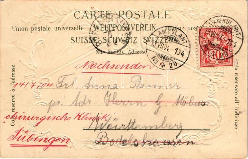 Beschreibung: 1904 Basel, St. Jacobs Denkmal / monument, coat of arms, flags. Art Nouveau, litho, Emb.