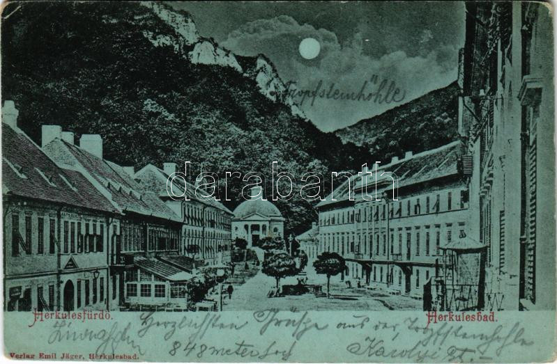 1898 Herkulesfürdő, Baile Herculane; fürdő este holdfényben. Emil Jäge... https://www.darabanth.com/de/45-Gross-Auktion/45.1/Ansichtskarten/Siebenburgen~18764/1898-Herkulesfurdo-Baile-Herculane-furdo-este-holdfenyben-Emil-Jager-kiadasa-spa-at-nigh~II3438824