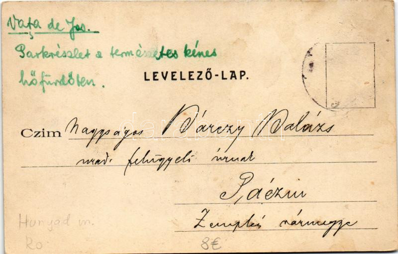 1902 Alváca, Vata de Jos (Hunyad); Természetes kénes hőfürdő park rész... https://www.darabanth.com/de/45-Gross-Auktion/45.1/Ansichtskarten/Siebenburgen~18764/1902-Alvaca-Vata-de-Jos-Hunyad-Termeszetes-kenes-hofurdo-park-reszlete-spa-park-Rb~II3435915