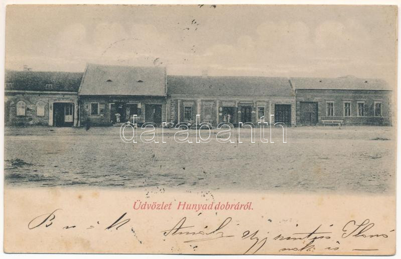 1908 Dobra, Hunyaddobra (Hunedoara); utcakép, Petrovits József üzlete,... https://www.darabanth.com/de/45-Gross-Auktion/45.1/Ansichtskarten/Siebenburgen~18764/1908-Dobra-Hunyaddobra-Hunedoara-utcakep-Petrovits-Jozsef-uzlete-gyogyszertar-Adler-fen~II3454782