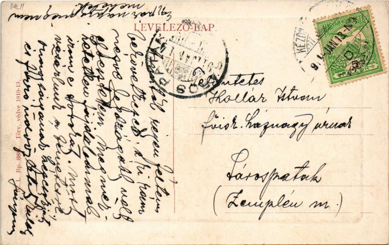 1911 Kézdivásárhely, Targu Secuiesc; Fő tér, Városi Vigadó szálloda, piac, Szabó János üzlete. W.L. Bp. 6881. 1910-13. / main square, hotel, market, shops (EK)