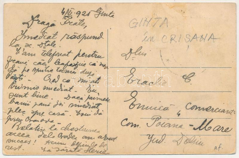 1921 Gyanta, Ginta (Bihar, Feketekápolna, Capalna); Fő utca télen, gyó... https://www.darabanth.com/de/45-Gross-Auktion/45.1/Ansichtskarten/Siebenburgen~18764/1921-Gyanta-Ginta-Bihar-Feketekapolna-Capalna-Fo-utca-telen-gyogyszertar-main-street-~II3439828