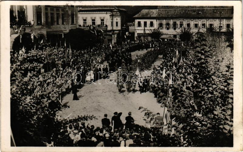1940 Nagybánya, Baia Mare; bevonulás / entry of the Hungarian troops +... https://www.darabanth.com/de/45-Gross-Auktion/45.1/Ansichtskarten/Siebenburgen~18764/1940-Nagybanya-Baia-Mare-bevonulas-entry-of-the-Hungarian-troops-plus-1940-Szatmarnemeti-vissz~II3443074