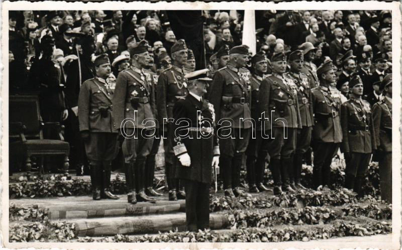 Beschreibung: 1940 Szamosújvár, Gherla; bevonulás, Horthy Miklós kormányzó, katonák / entry of the Hungarian troops, regent Horthy, soldiers. photo + "1940 SZAMOSÚJVÁR VISSZATÉRT" So. Stpl