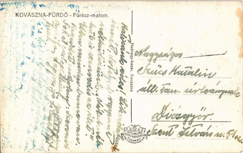 Kovászna-fürdő, Baile Covasna; Fűrész malom / sawmill (fl) https://www.darabanth.com/de/45-Gross-Auktion/45.1/Ansichtskarten/Siebenburgen~18764/Kovaszna-furdo-Baile-Covasna-Furesz-malom-sawmill-fl~II3449707