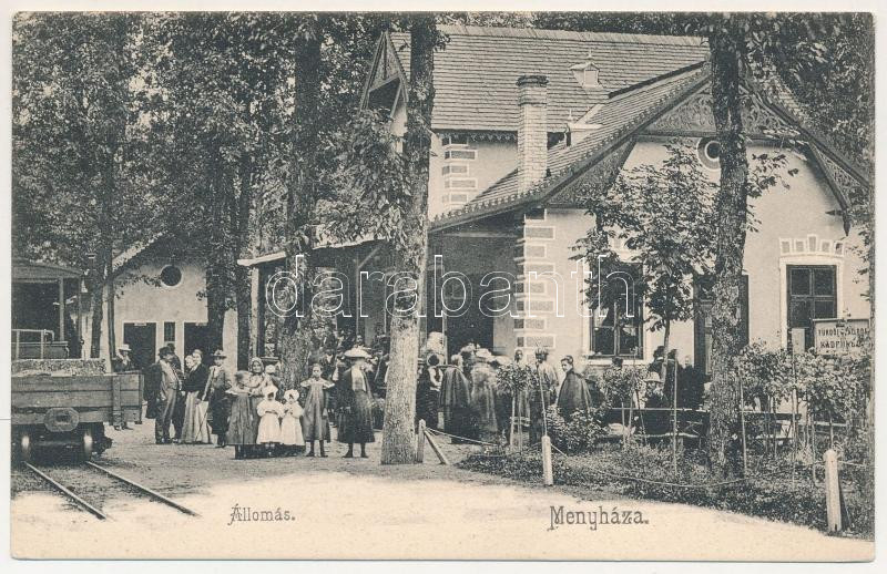 Beschreibung: Menyháza, Monyásza, Moneasa; vasútállomás, vonat / railway station, train