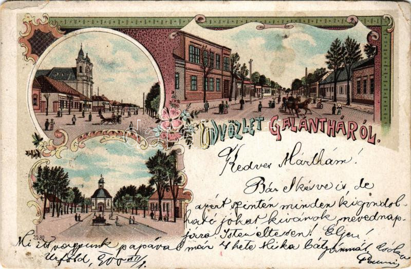 1900 Galánta, templom, kápolna, utca részlet. Szecessziós-virágos lith... https://www.darabanth.com/de/45-Gross-Auktion/45.1/Ansichtskarten/Slowakei~18765/1900-Galanta-templom-kapolna-utca-reszlet-Szecesszios-viragos-litho-church-chapel-stree~II3447395