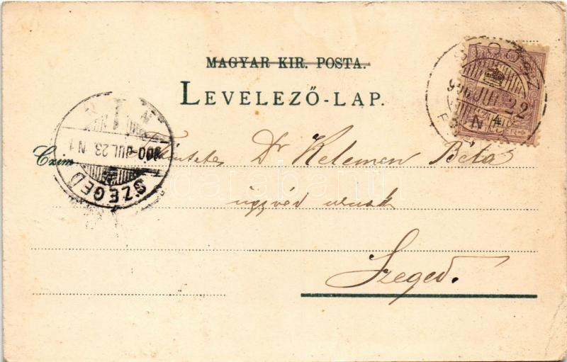 Beschreibung: 1900 Stószfürdő, Stoósz-fürdő, Kúpele Stós; Dr. Czirfusz villa, látkép, Hungária nyaraló, Kompordai ház. Wlaszlovits Gusztáv No. 103. / villas, spa. Art Nouveau, floral, litho (vágott / cut)
