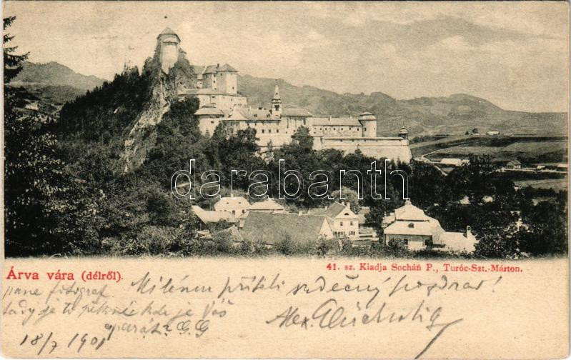 1901 Árvaváralja, Árva-Váralja, Oravsky Podzámok; Árva vára délről. So... https://www.darabanth.com/de/45-Gross-Auktion/45.1/Ansichtskarten/Slowakei~18765/1901-Arvavaralja-Arva-Varalja-Oravsky-Podzamok-Arva-vara-delrol-Sochan-P-41-sz-ca~II3452732