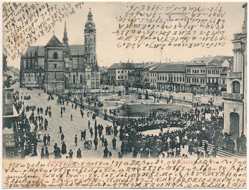 1902 Kassa, Kosice; Szabadság tér, dóm, üzletek. titkosírással írva. 2... https://www.darabanth.com/de/45-Gross-Auktion/45.1/Ansichtskarten/Slowakei~18765/1902-Kassa-Kosice-Szabadsag-ter-dom-uzletek-titkosirassal-irva-2-reszes-kihajthato-pa~II3437940