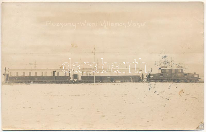 1914 Pozsony, Pressburg, Bratislava; Pozsony-Bécs villamos vasút télen... https://www.darabanth.com/de/45-Gross-Auktion/45.1/Ansichtskarten/Slowakei~18765/1914-Pozsony-Pressburg-Bratislava-Pozsony-Becs-villamos-vasut-telen-vonat-Pressburg-Wien-el~II3445977