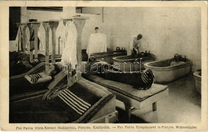1918 Pöstyén, Piestany; Pro Patria Vöröskereszt Hadikórház, kádfürdők / Pro Patria Kriegslazarett, Wannenbäder / WWI K.u.K. military hospital, bathtubs (tűnyomok / pin marks)