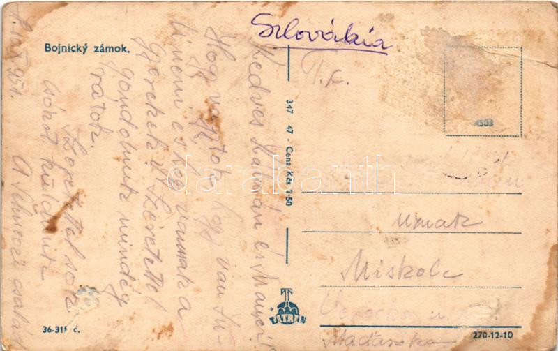 1951 Bajmóc, Bojnice; Bajmóc vára (Pálffy várkastély) / Bojnicky hrad ... https://www.darabanth.com/de/45-Gross-Auktion/45.1/Ansichtskarten/Slowakei~18765/1951-Bajmoc-Bojnice-Bajmoc-vara-Palffy-varkastely-Bojnicky-hrad-castle-Rb~II3417323