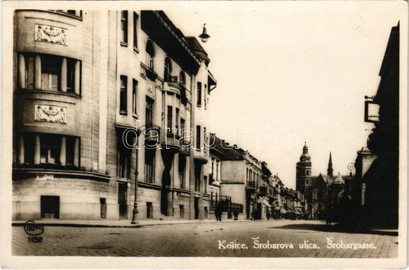 Kassa, Kosice; Srobarova ulica / Srobár utca és Székesegyház, üzletek ... https://www.darabanth.com/de/45-Gross-Auktion/45.1/Ansichtskarten/Slowakei~18765/Kassa-Kosice-Srobarova-ulica-Srobar-utca-es-Szekesegyhaz-uzletek-street-view-cathedral-~II3455666