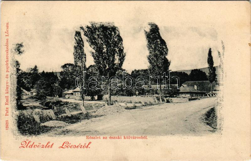 Lőcse, Levoca; Részlet az északi külvárosból. Patz Emil kiadása / subu... https://www.darabanth.com/de/45-Gross-Auktion/45.1/Ansichtskarten/Slowakei~18765/Locse-Levoca-Reszlet-az-eszaki-kulvarosbol-Patz-Emil-kiadasa-suburban-street-EK~II3438418