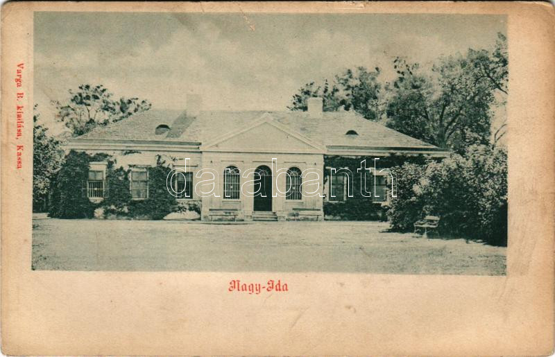 Nagyida, Velká Ida; Prihradny kastély. Varga B. kiadása / castle (r) https://www.darabanth.com/de/45-Gross-Auktion/45.1/Ansichtskarten/Slowakei~18765/Nagyida-Velka-Ida-Prihradny-kastely-Varga-B-kiadasa-castle-r~II3446239