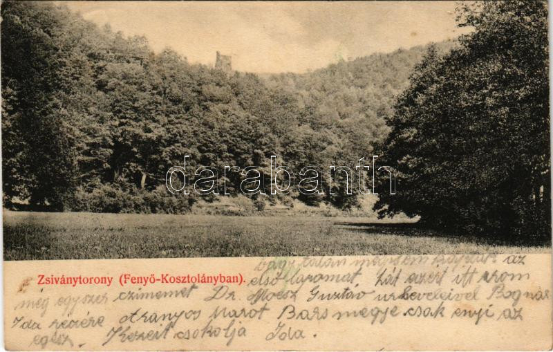 Zsiványtorony, Zsivánska veza (Felsőkosztolány, Horny Kostolan); vár. ... https://www.darabanth.com/de/45-Gross-Auktion/45.1/Ansichtskarten/Slowakei~18765/Zsivanytorony-Zsivanska-veza-Felsokosztolany-Horny-Kostolan-var-Brunczlik-Imre-kiadasa-~II3438347