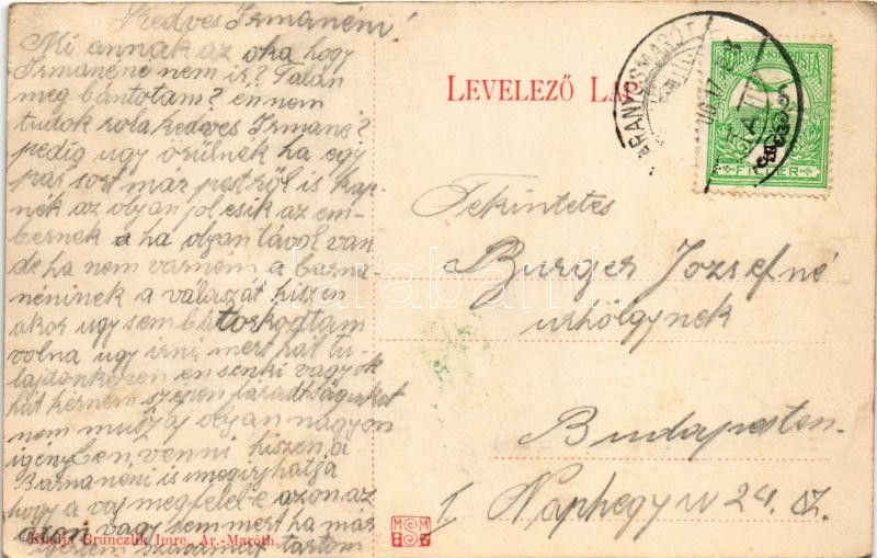 Beschreibung: Zsiványtorony, Zsivánska veza (Felsőkosztolány, Horny Kostolan); vár. Brunczlik Imre kiadása (Aranyosmarót) / castle (EK)