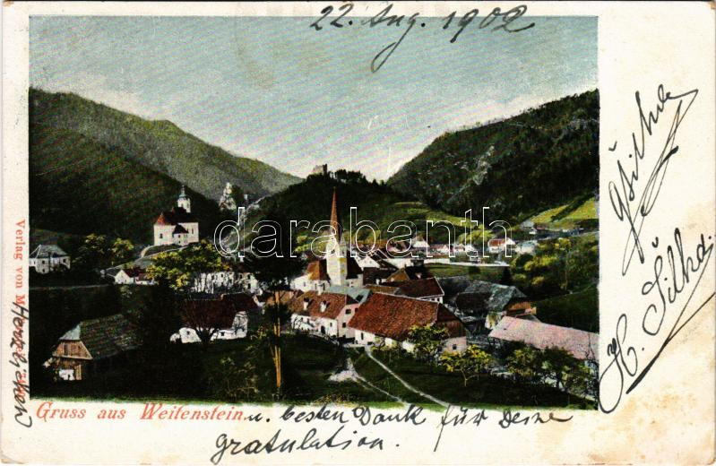 1902 Vitanje, Weitenstein; general view with church (fl) https://www.darabanth.com/de/45-Gross-Auktion/45.1/Ansichtskarten/Slowenien~18818/1902-Vitanje-Weitenstein-general-view-with-church-fl~II3454811