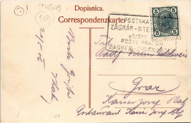1906 Krsko, Gurkfeld; general view + "POSTAKALAUZ ZÁGRÁB - STEINB... https://www.darabanth.com/de/45-Gross-Auktion/45.1/Ansichtskarten/Slowenien~18818/1906-Krsko-Gurkfeld-general-view-plus-POSTAKALAUZ-ZAGRAB-STEINBRUCK-KOZOTT-ketnyelvu-vasu~II3454820
