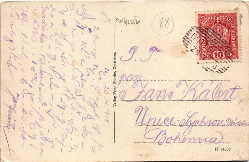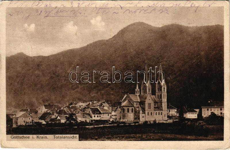 1918 Kocevje, Gottschee, Cocevie; Totalansicht / general view, church.... https://www.darabanth.com/de/45-Gross-Auktion/45.1/Ansichtskarten/Slowenien~18818/1918-Kocevje-Gottschee-Cocevie-Totalansicht-general-view-church-Verlag-Peter-Petsche-EK~II3454728