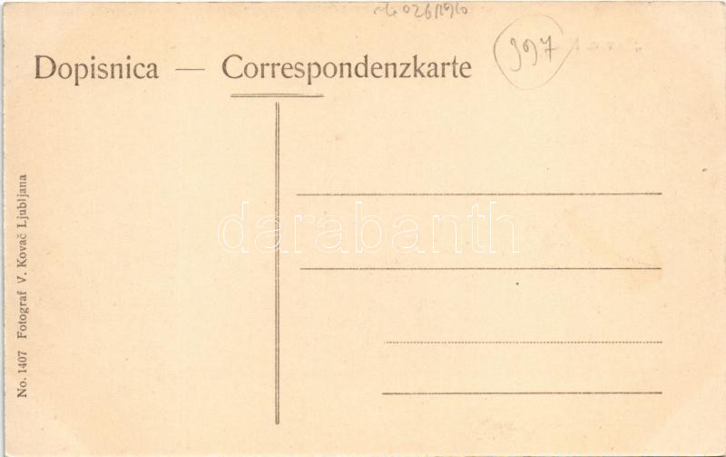 Bovec, Flitsch; general view. Fotograf V. Kovac https://www.darabanth.com/de/45-Gross-Auktion/45.1/Ansichtskarten/Slowenien~18818/Bovec-Flitsch-general-view-Fotograf-V-Kovac~II3456198